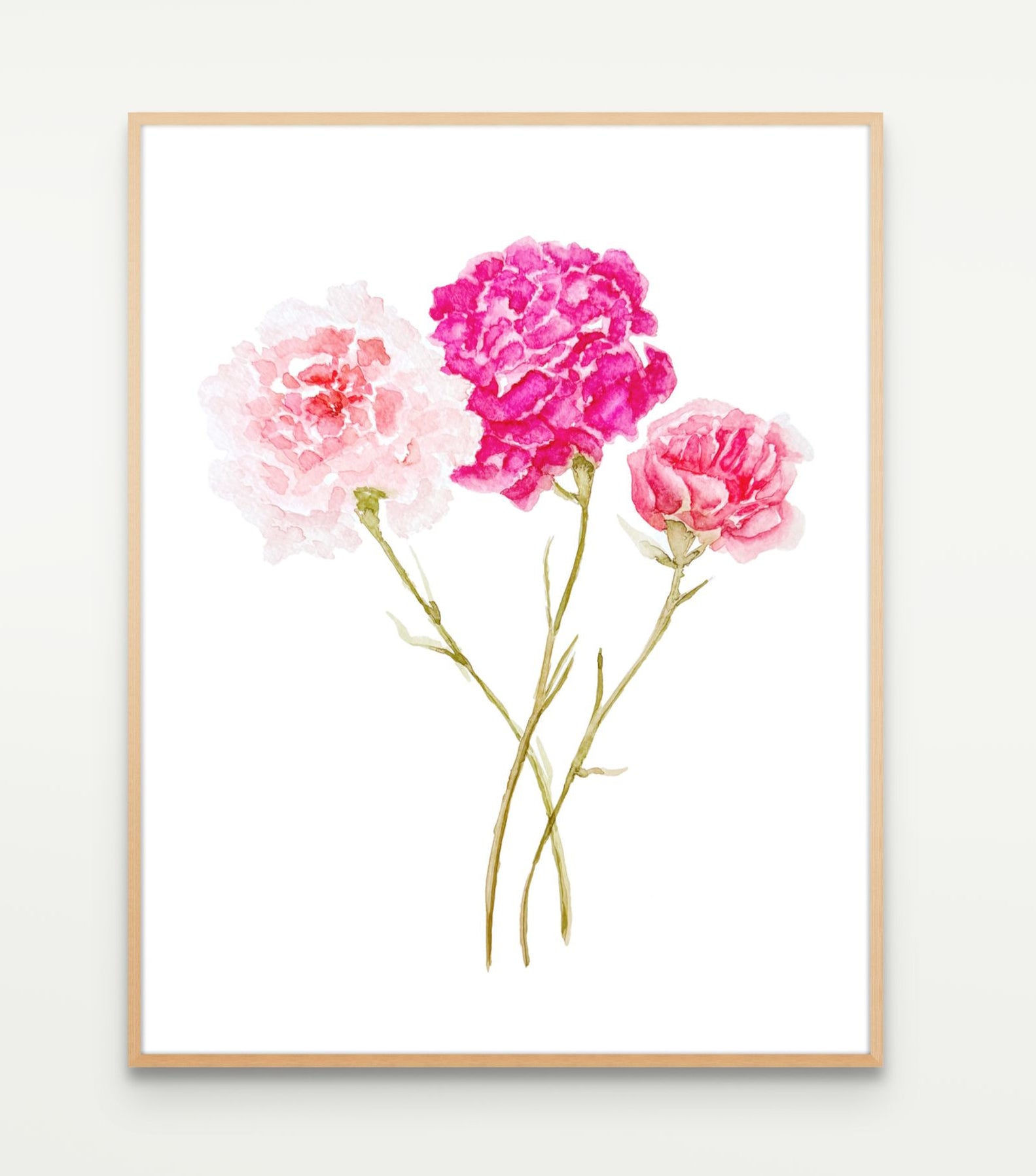 This original 8x10 watercolor on paper was a commission. I am offering a limited-edition drop of just 200 prints of these pink carnations, available exclusively online in the prints on paper section. Frame not included.